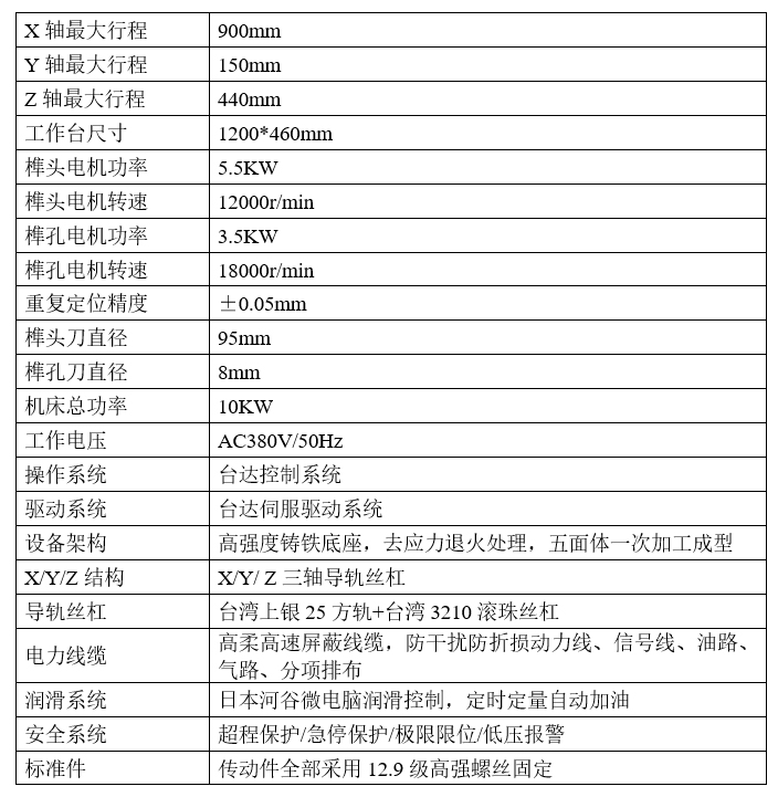 ◆榫頭電機(jī)采用5.5KW大功率高速電機(jī),保證大吃刀高速加工。